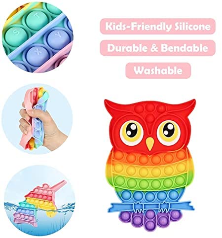 About Pop Fidget Toys-Non-toxic, food grade material, Eco-friendly- Excellent quality without worry about children-Helpful for special needs people such as ADD, ADHD or OCD-Endless fun and usable push pop bubble sensory toy-Great gifts for children or friendsProduct Feature-Cute Animals Owl in us pop fidget toy-Weight 70g / 0.15 lb-Portable for carrying-Durable and reusable-Easy to wash and cleanHow to play the fidget toys-Players take turns pressing down any number of mice in a single line-Each player can press 1 piece one time-Also can press more but the pieces must be connected and at same line-Player who presses down the last mouse loses the roundProduct Guarantee: If any unsatisfied with our products, please do not hesitate to contact us by .