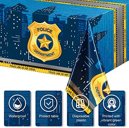Police Themed Birthday Party Supplies Police Party Plastic Tablecloths Police Department Badge Table Cover Police City Warning Line Table Banner for Kids Birthday Party Decorations