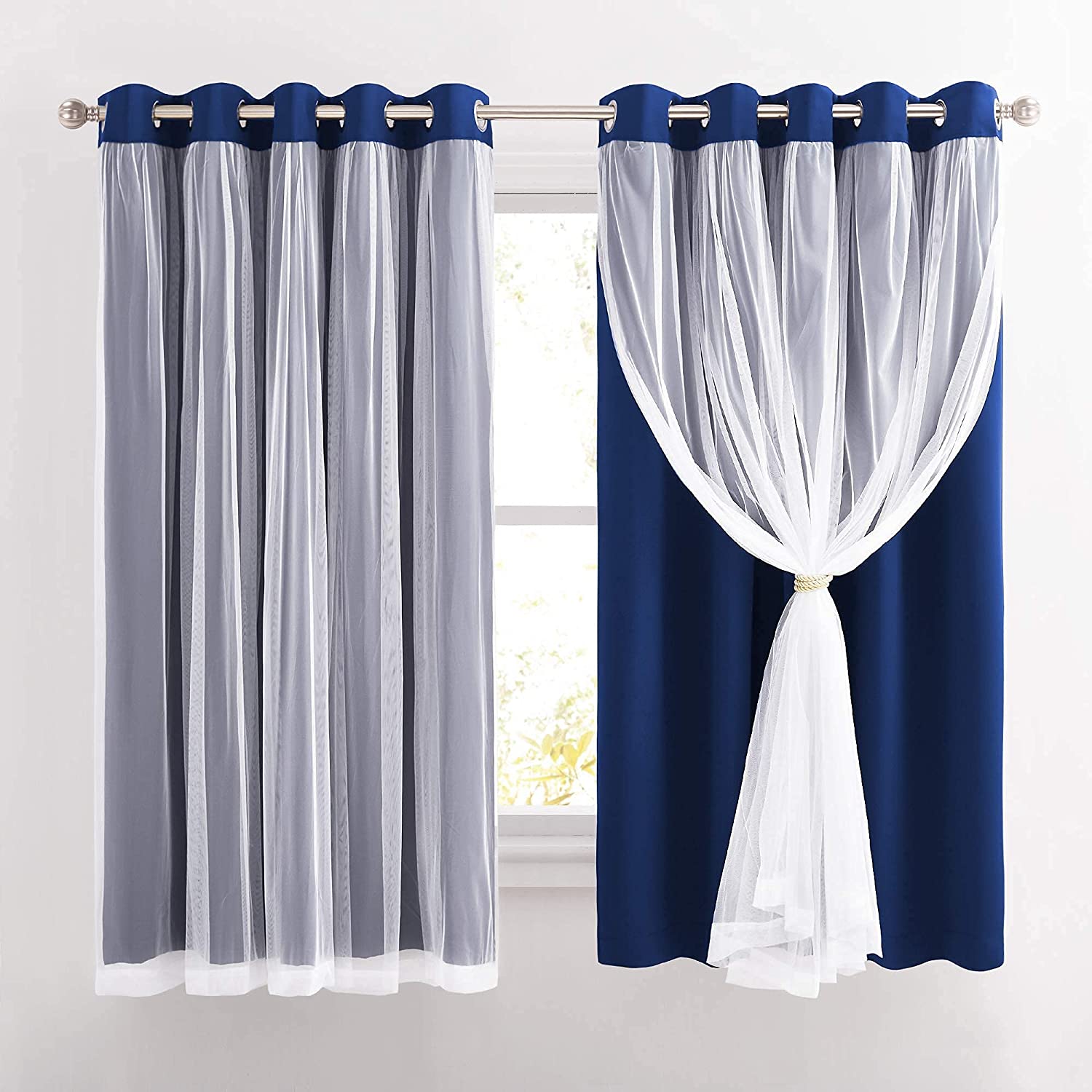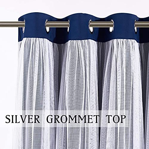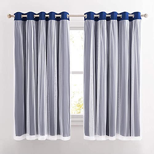 PONY DANCE Navy Blue Curtains – Room Darkening Curtains Light Block with Sheer Elegance Drapery Layer Mix and Match for Living Room/ Kids Bedroom (Set of 2, 70×63 inch with Tie-Backs)