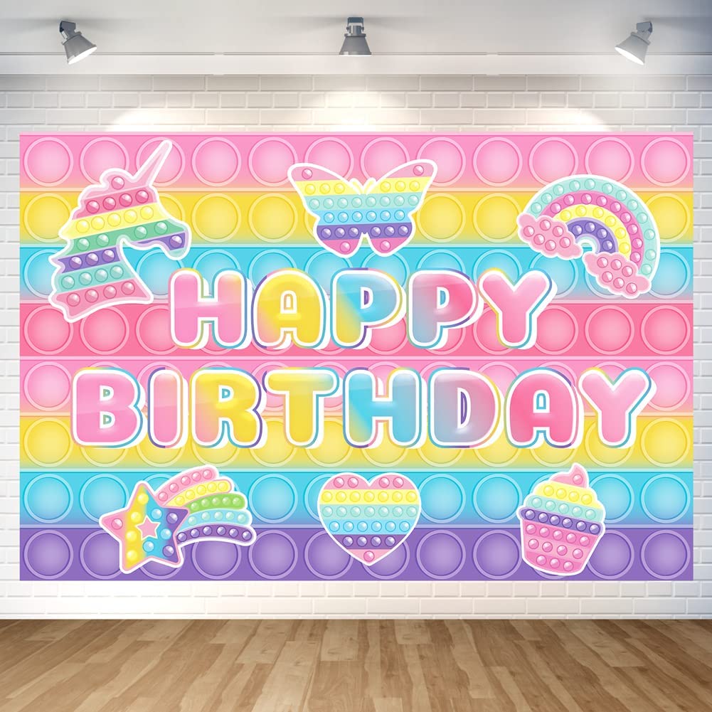 Pop Birthday Party Decorations,Macaron Pastel Pop Push Backdrop 5x3Ft for Girls boys Kids Adults Rainbow Popper Pop Fidget Toy Birthday Party Supplies Happy Birthday Banner Photography Background