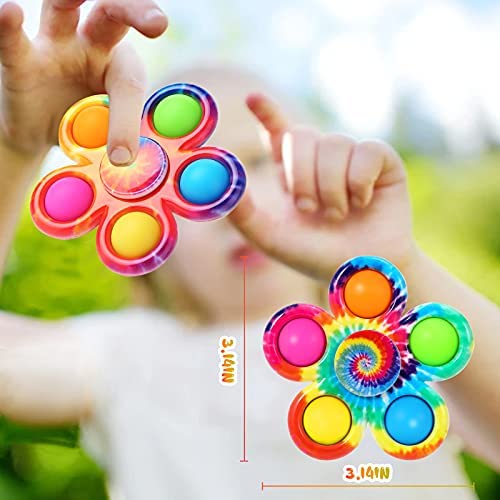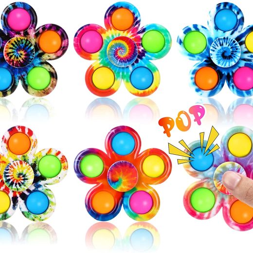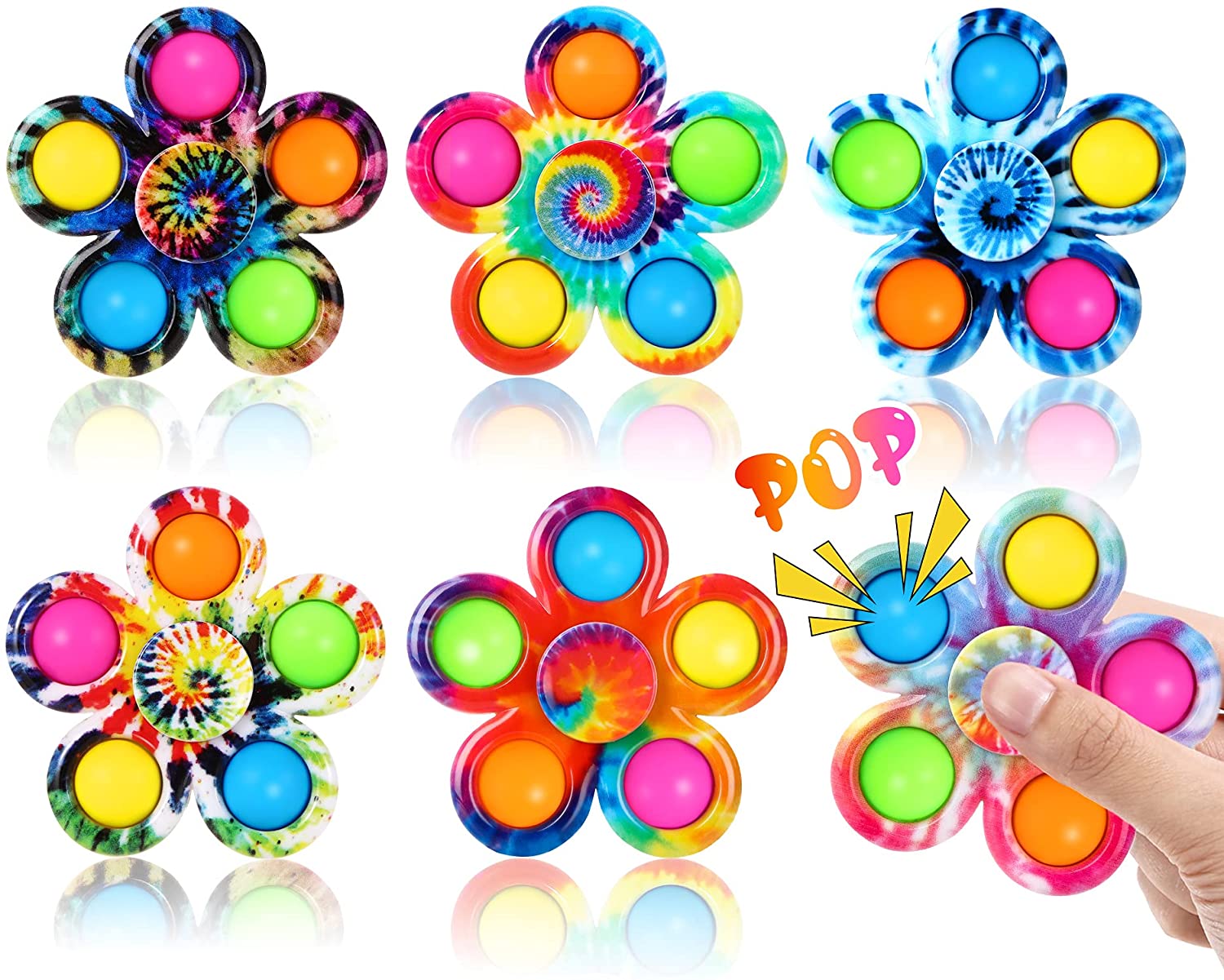 Pop Fidget Spinner 6 Pack- Valentine Party Favors Easter Basket Stuffers Goodie Bag Return Gifts Birthday for Kids- Tie Dye Fidget Toys Popper Bulk