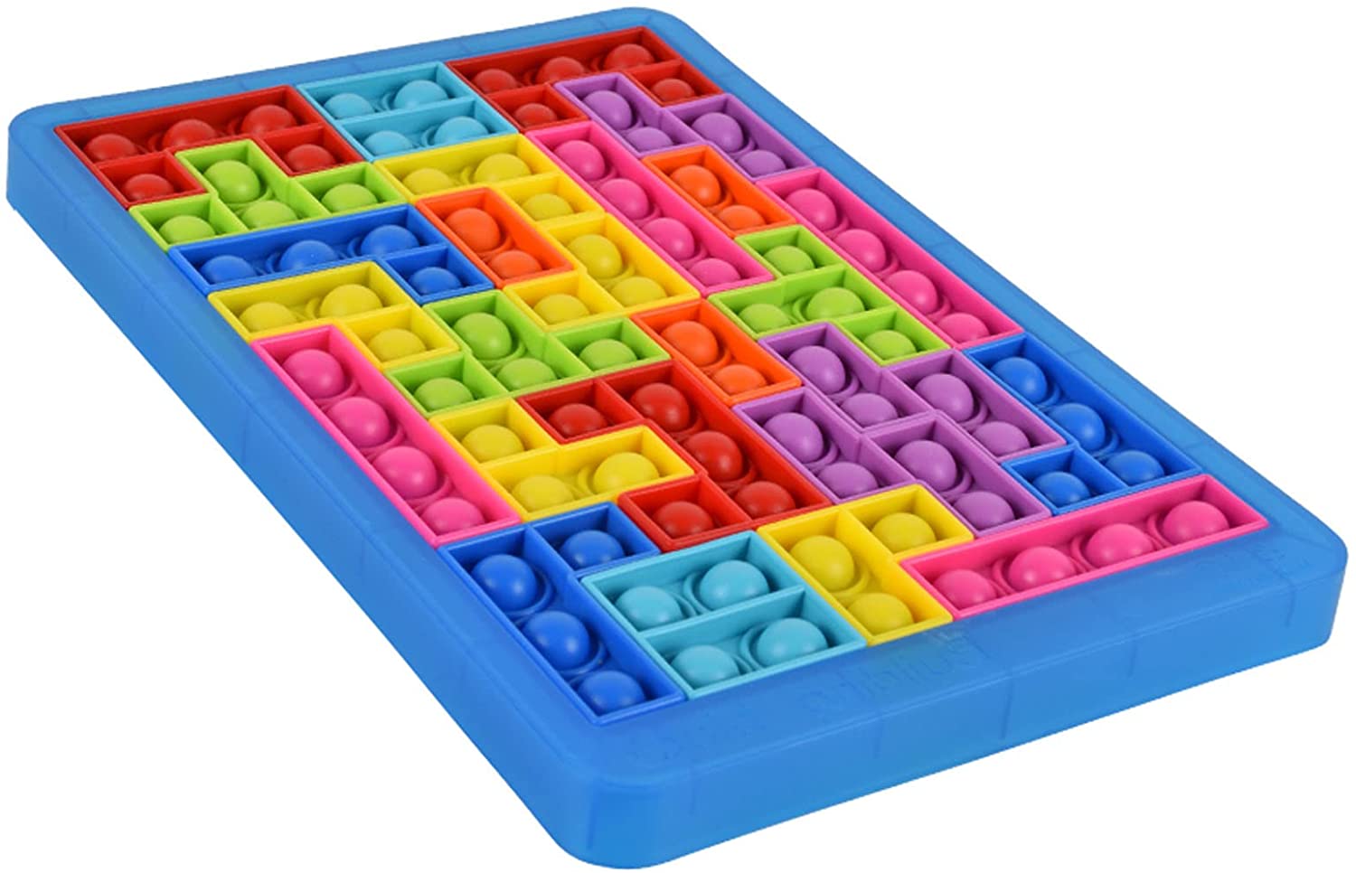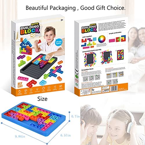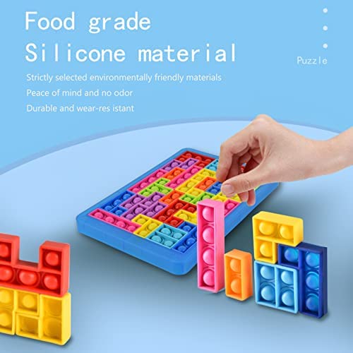 26 Pieces Puzzle (Including 8 Colors and 8 Geometric Shapes): Studies have shown that childrens recognition, discrimination, and selection of things are mostly based on colors that have a strong visual appeal. Therefore, playing games through this puzzle is very helpful to cultivate childrens cognition of things, the sensibility of beauty, as well as imagination and drawing ability. Multiple Game Options: single-player limited-time puzzle game, that is, put the puzzle into the base in the shortest time, there are many ways to complete the puzzle; Double or multiplayer thinking chess game, please refer to the manual or self Create the rules of the game. It is a bond that promotes siblings and parent-child relationship. Safe and High-quality Silicone Material: This fidget puzzle toy is made of safe, healthy, non-toxic and odorless silicone. It has undergone strict audit and testing, and meets the national safety regulations for childrens products. Soft, comfortable, washable and durable, it can be repeatedly pressed thousands of times. Sensory bubble toys are safe for children, the elderly and adults. Relieve Stress and Anxiety: With a wealth of colors and shapes combined with the most popular fidget bubble game, players can assemble their favorite puzzle shapes at will, and then press the bubbles to relieve their stress and anxiety. It is especially suitable for autistic patients, and it is also the most direct and convenient choice for adults and children to decompress. What can you get after buying it You can get 26 puzzle pieces with 8 colors and 8 shapes,1 Base, beautiful packaging box (game guide is included on the back of the box). 366 days of worry-free service and 24-hour after-sales team. Most importantly, it can bring your children a beautiful and colorful childhood.