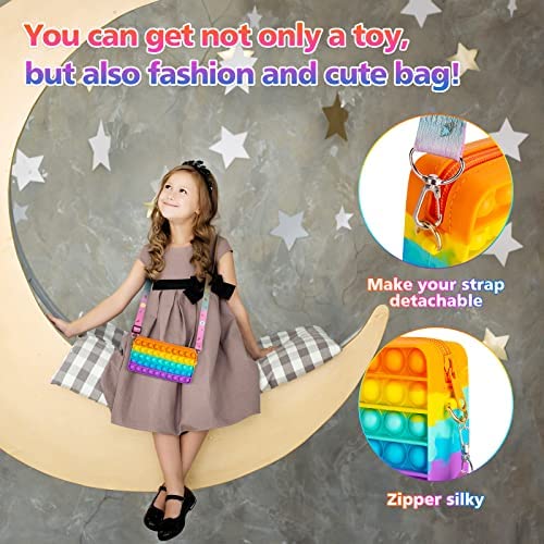 Pop it Fidget Toy Shoulder Bag for Girls and Women, Rainbow Color Pop Purse Bags, Push Bubble Fidget Sensory Toys, School Supplies Backpack Silicone Bag Crossbody for Autism ADHD Anxiety Stress Relief