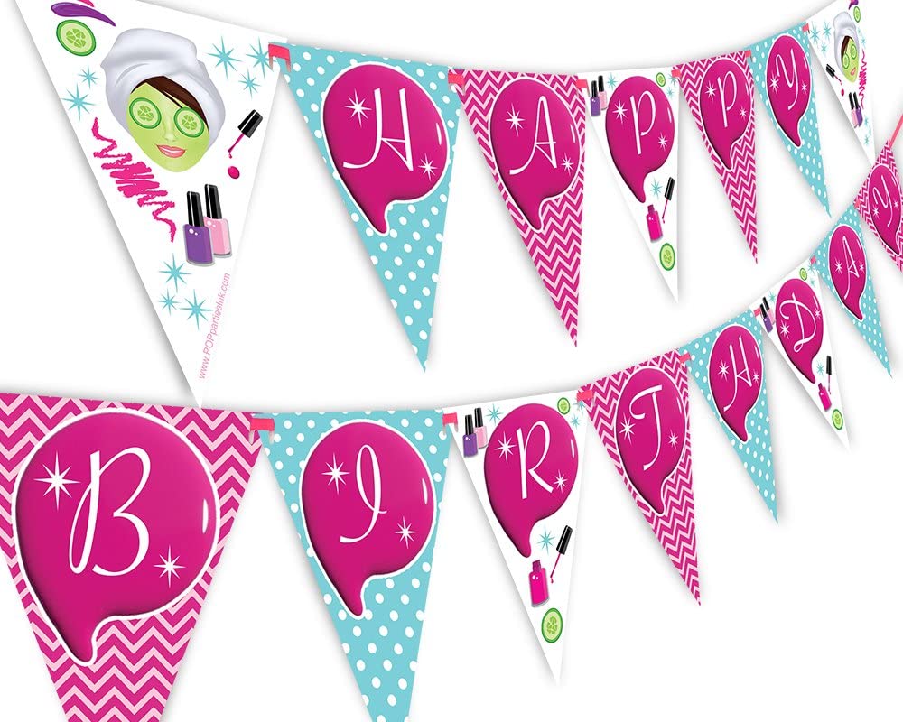 POP parties Spa Party Happy Birthday Banner Pennant – Glamour Party – Make Up Party Banner