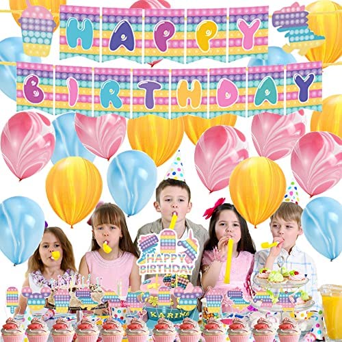 Pop Party Decorations for Girls, 34 Pcs Birthday Party Supplies For Pop Toys, Happy Birthday Banner, Balloons, Pop Cake for Kids Pop Game Theme Party Decoration Set Gift Birthday Party Favor