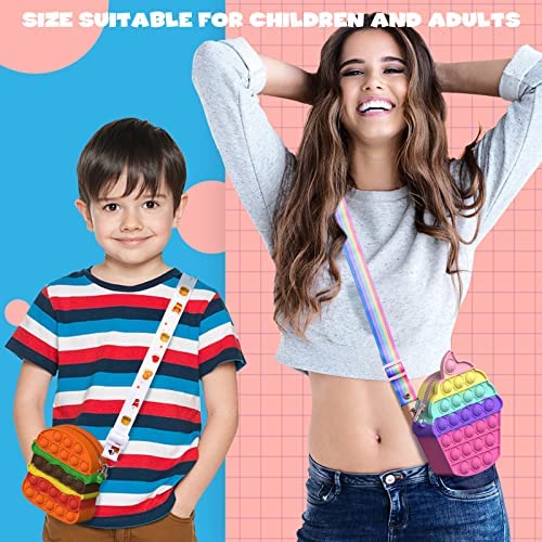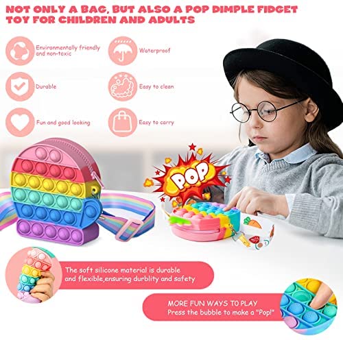 NEW TRENG 2021 The new pop fidget toys bags is unique 2 in 1 design consisting of pop fidget toy and shoulder bag, our pop shoulder bag toy can be used both as a bag and as a decompression fidget toy when you need it. Make a pop pop bring extremely fun! 100% BPA FREE Our fidget toy messenger bag undergo a strict, officially controlled quality process, its conform to all safety standards and are made of food-safe silicone with no bad odour, which is not harmful to the health of humans or animals. LITTLE FASHIONISTA This popper fidget toy bag is equipped with a adjustable length chain for kids and adult. You can carry it as a top handle satchel or a shoulder bag, or a crossbody bag, or a Coin purse, adorable size and shape is perfect for the little fashionista. SOOTHING ANTISTRESS Ous pop bag like pop fidget toys, press the bubbles down and they make a slight popping sound, just like popping bubble-wrap. The bright colour and pleasant sound will help people reduce the anxiety, concentration and effectively stress, eliminate irritability. PERFECT GIFT Want to surprise someone This fashion shoulder bag toy is a perfect present for your child, nieces, your friends daughters, kids, girlfriend on birthdays, childrens day, christmas and other special occasion.