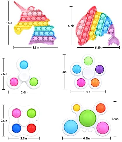 Relieve Stress The pop fidget toys packs are light and small, and are easy to store. It can be used in offices, waiting halls, libraries, cars and other places for entertainment and decompression at any time. The bubble sounds of sensory toys can help us relieve anxiety and improve our concentration and finger flexibility,is the best stress relief toy for kids and adults. Safe Materials & High DurableThe push fidget toys made of high quality silica gel, 100% safe. Feel comfortable, durable, washing does not fade, can be repeated kneading, friction. The elderly and children can be 100% safe to use. There is no need to worry about security. Suitable For All Kinds Of PeopleThis fidget toy is suitable for all ages and is an excellent family game to increase parent-child feelings. It is not only a toy for childrens learning and growth, but also a recreational toy for the elderly. It is also the best product to help patients with PDD, ADHD, OCD and AD restore their mood and prevent brain degeneration. Prefect Gift & Value packsThis package comes with 6 pack in a perfect gift box, fidgets toys set can be used as a perfect gift for birthday parties, Halloween, Christmas, Valentines Day and other holidays. It can also be used to fill gifts and reward prizes. It is the best choice to promote friendships and parent-child relationships. Satisfactory ServiceDleDan toys are made of high-quality product materials, just to make toys that satisfy every consumer. If you have any questions about the product, please contact us and we will provide you with a 100% satisfactory solution.