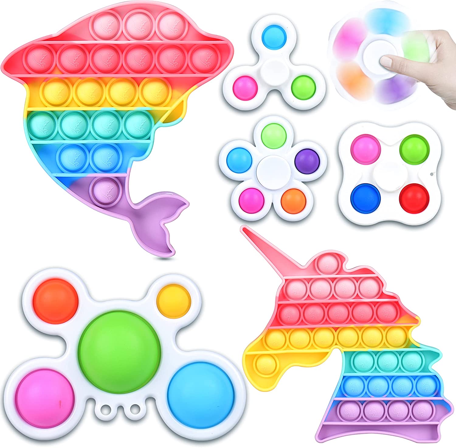 Pop Push Bubble Sensory Fidget Toy, Fidget Toys, Fidget Pack, Silicone Stress Reliever Toy, Simple Dimple Toy, Fidget Spinner Toy, Autism Special Needs Stress Reliever Toys Set for Kids Adults.