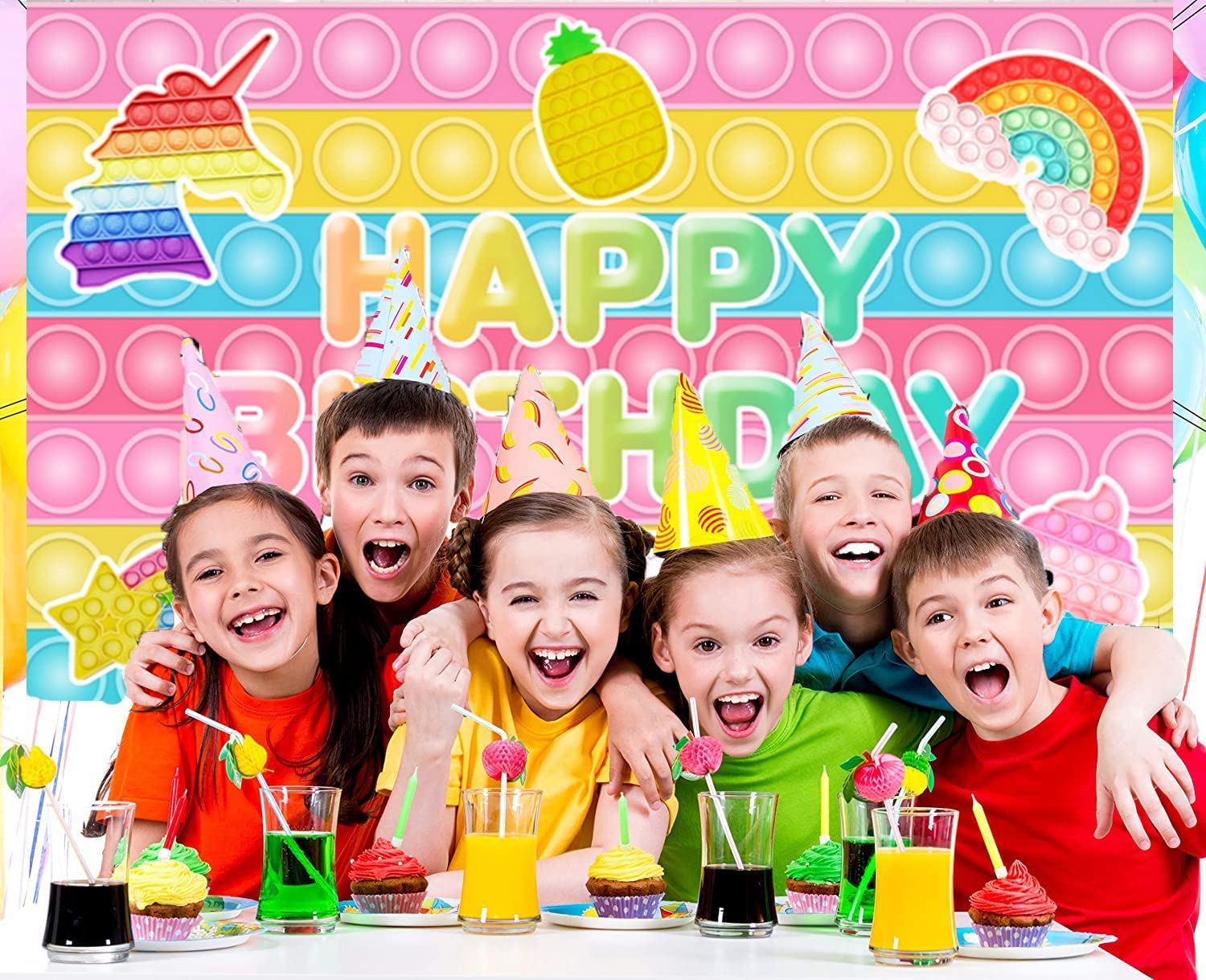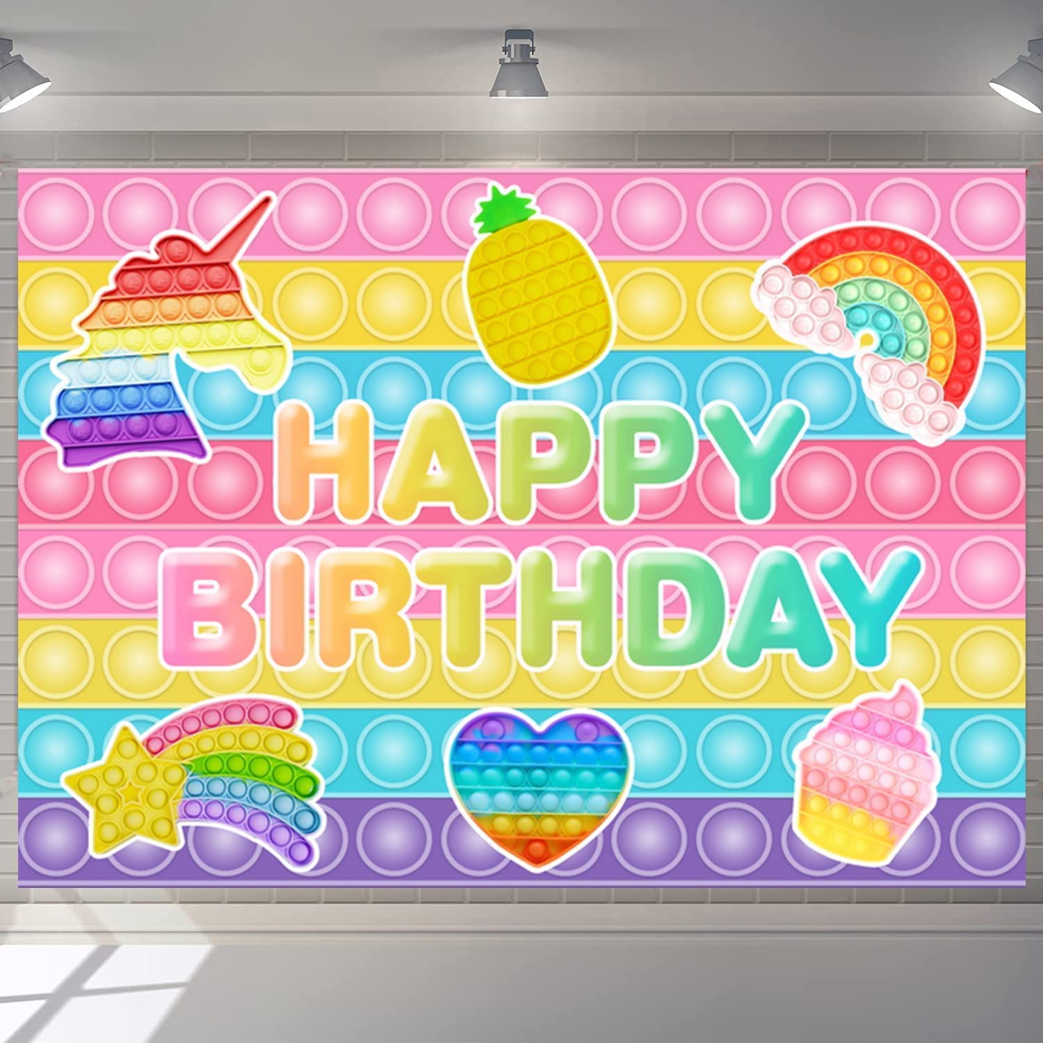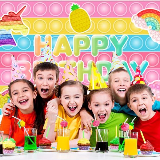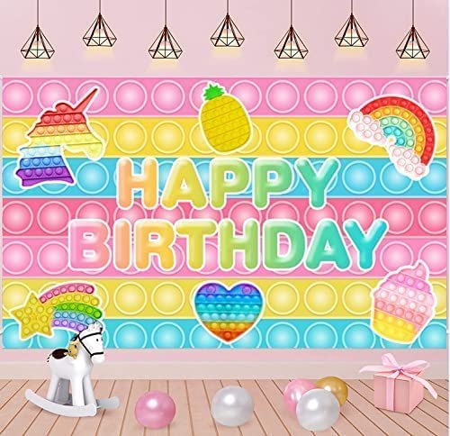 Pop Toy Backdrop Pop Theme Birthday Party Decorations Supplies for Girls Kids Macaron Pastel Pop Happy Birthday Backdrop Banner Video Game Photography Background Pop Party Favors 5X3ft