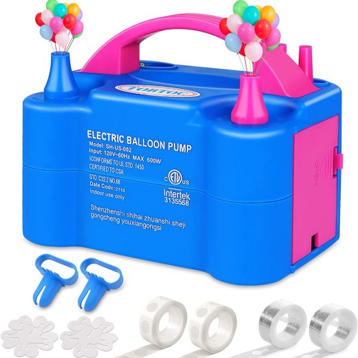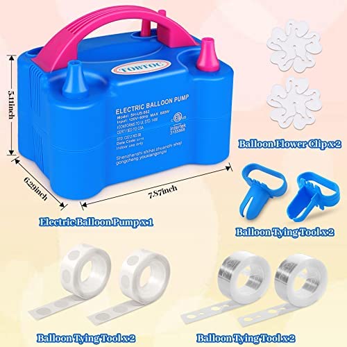 Portable Balloon Pump Electric Kit – New Dual Nozzle Air Inflator Blower, 2 Tying Tool, 2 Tape Strip, 2 Dot Glue Roll for DIY Balloon Arch, Balloon Column Stand, Party Balloon Decoration (110V 600W