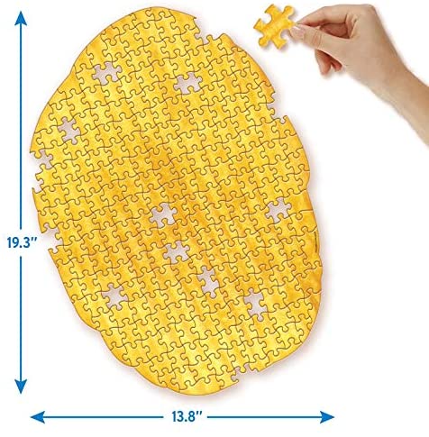 TOO MUCH SNACKING: These puzzles take-away that hungry feeling! The perfect night-in includes this oversize specially die-cut Potato Chip Puzzle. It looks simple to make, but its deceptively challenging. Zero calories and 100% satisfying. Puzzling never felt so good. YUM! 236 PIECE PUZZLE: Thrill and challenge your family and friends by piecing together this interactive puzzle toy. Bring home hours of entertaining playtime and create fond memories! CHILDREN & ADULTS: Our difficult puzzles delight boys, girls, men, women, and kids alike. Quality design and easy to handle pieces make a satisfying puzzle building experience. Not suitable for toddlers. GREAT GIFT: Getting a cool gift for a tween or teen is hard, but our jigsaw puzzle for teenagers is colorful, eye-catching and will help develop their skills. It is a perfect present for birthdays, party favors, Christmas, Easter, or any holiday! DURABLE & HIGH-QUALITY: Super-durable and high-quality puzzle pieces lock together and stay together. This large format puzzle is 14 inches by 20 inches for a dramatic finished result. Jigsaws you cant unsee!