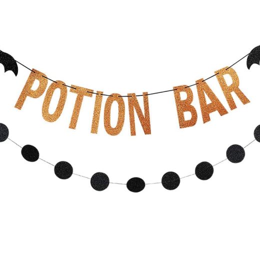 Potion Bar Banner and Black Glittery Circle Dots Garland- Potions Bar,Halloween Witches,Halloween Party Decorations,Bat Decor,Halloween Garland Decorations(Orange Glittery )