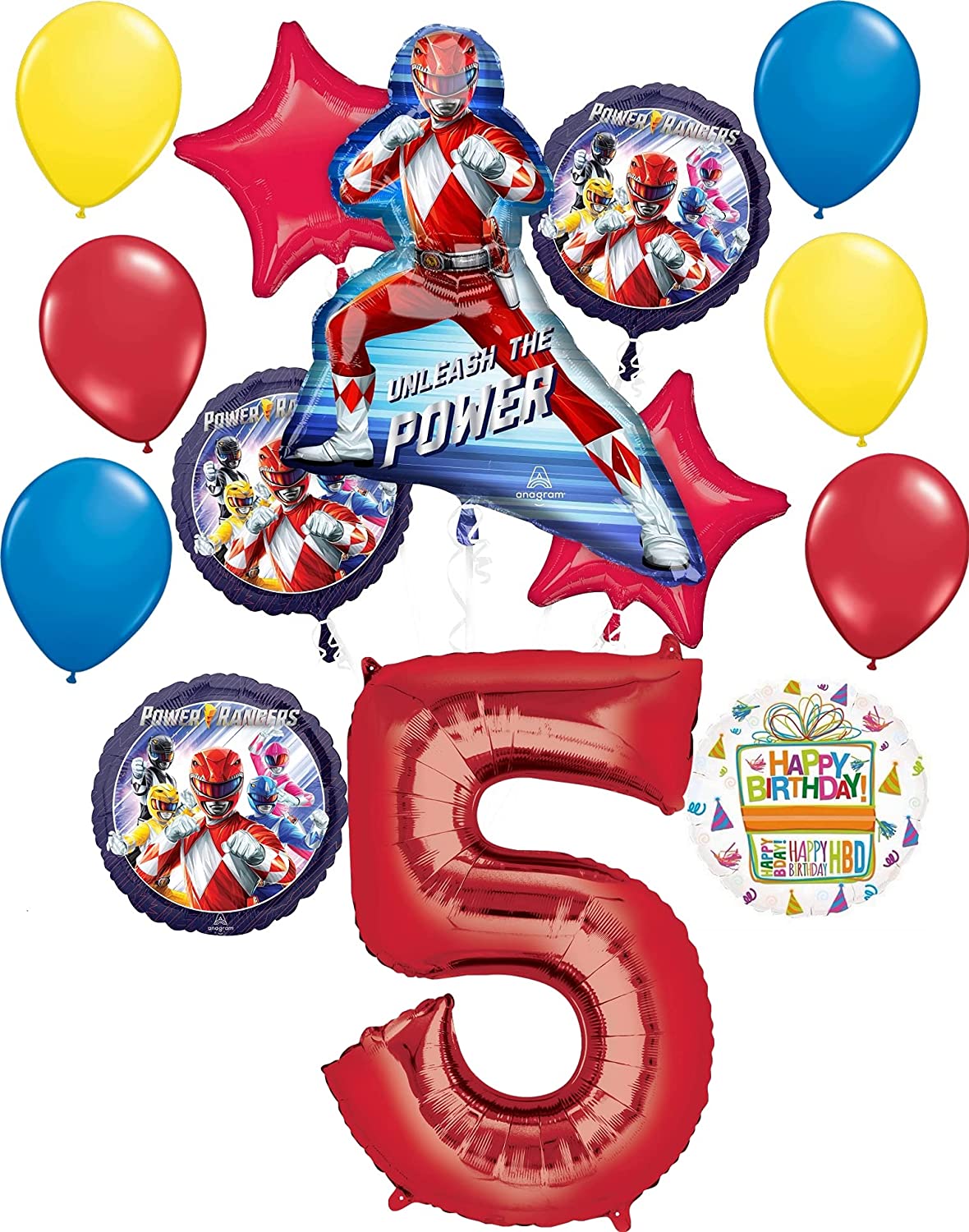 Power Rangers Party Supplies 5th Birthday Unleash the Power Balloon Bouquet Decorations Red Number 5