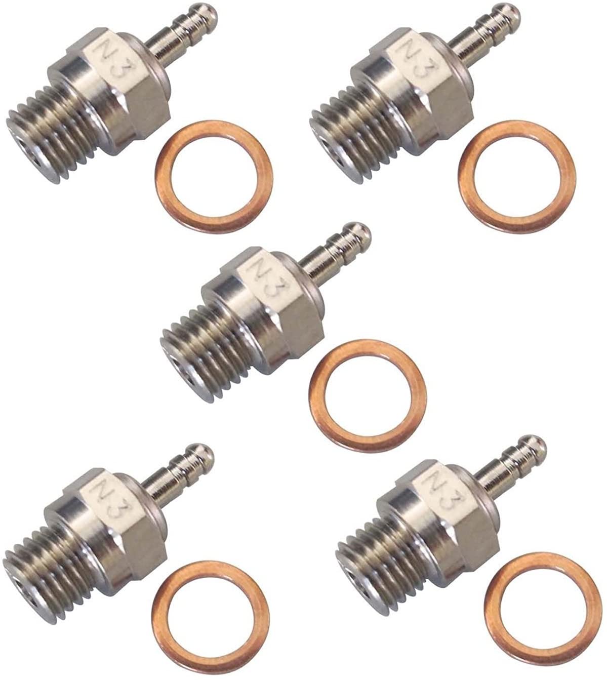 powerday Spark Glow Plug No.3 N3 Hot 70117 for RC Nitro Engines Car Truck TraxxasCompatible with: Volcano T2, Vortex SS, Tornado BB and More. Medium for Club Racing and Sport use. (Pack of 5 pcs)