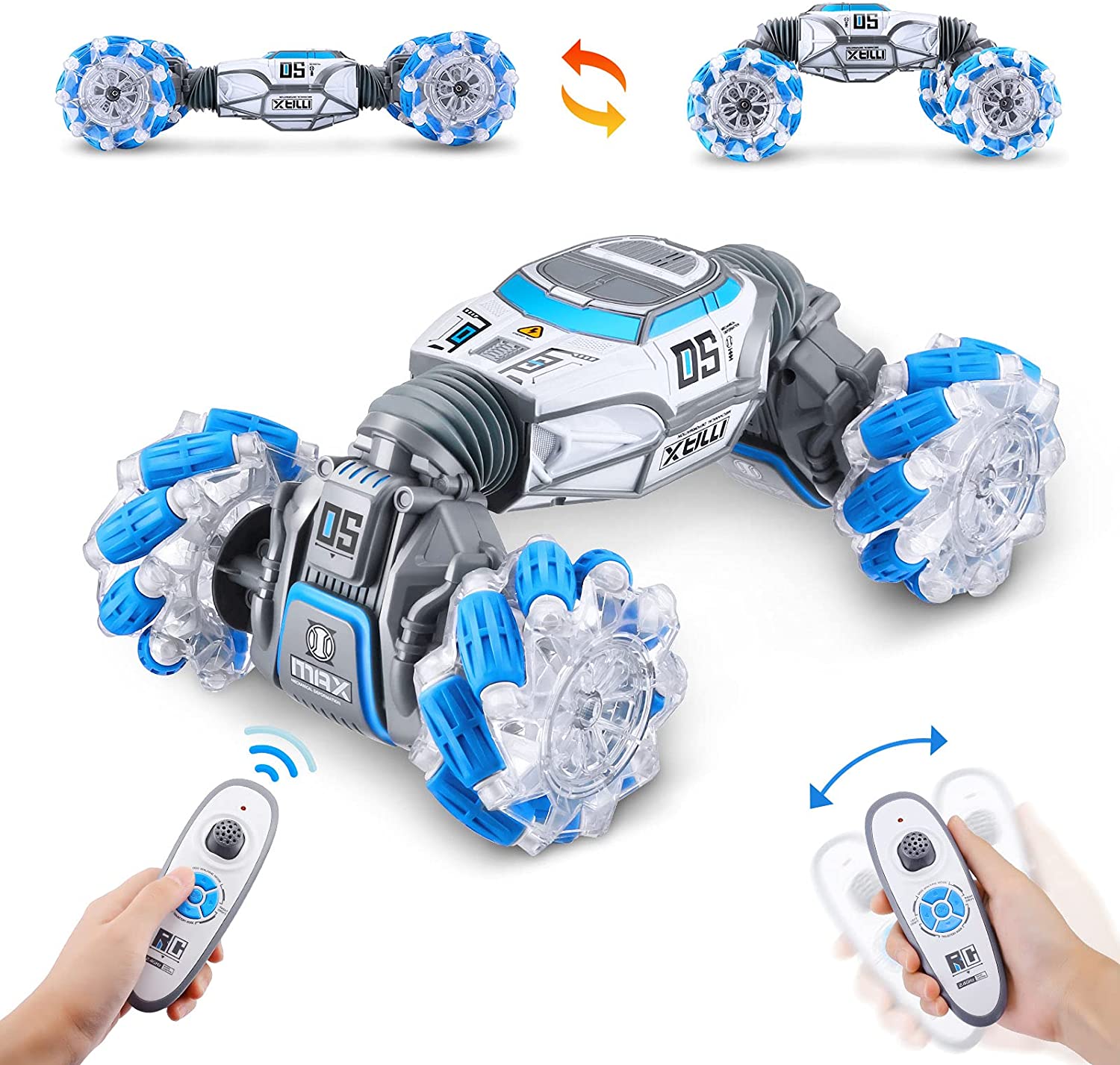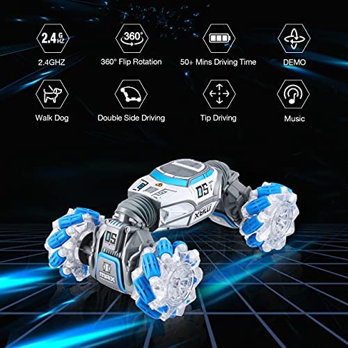 4 Wheel Hand Controlled Rc Stunt Car: This 4 wheel drive deformation RC stunt car is equipped with sensor system and more insane features out of your imagination. Fancy 360°rotating, double sides driving, forward, backward, turn left, turn right, music and LED light.
