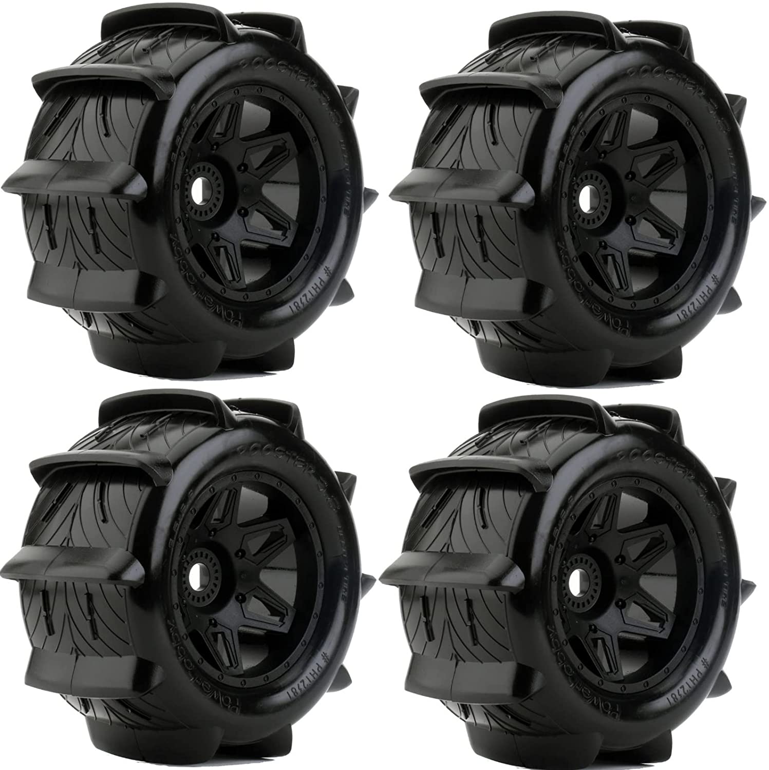 Powerhobby 1/8 Rooster 3.8 Belted Paddle Sand Snow Tires 17mm Wheels (4) FITS : 1/8 Monster Truck ARRMA KRATON/Outcast/NOTORIOU/TRAXXAS E-REVO/T-MAXX/Summit/LOSI LST/HPI Savage