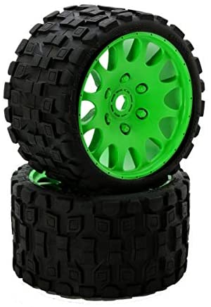 Powerhobby Scorpion Belted Monster Truck RC Tires/Wheels w 17mm Hex (4) Sport Compound FITS : Arrma Outcast Kraton Talion Notorious Fazon Speed Run Corally (Green)