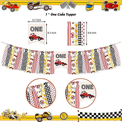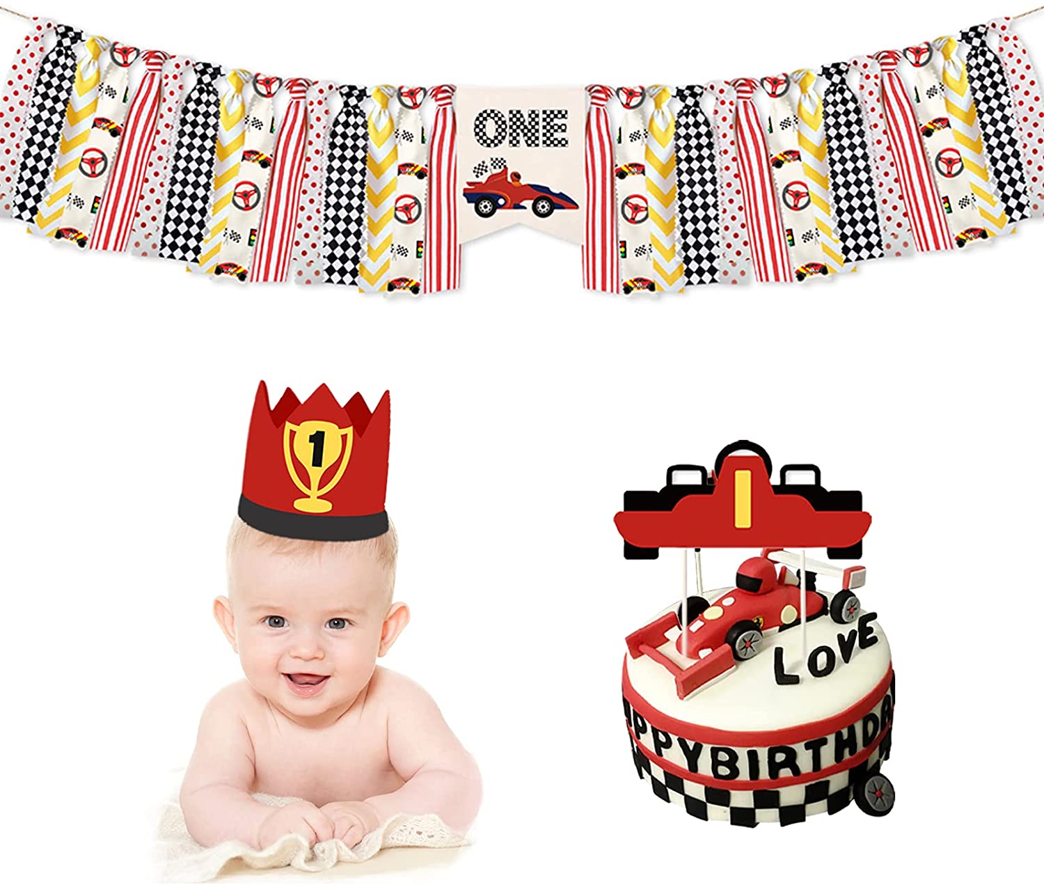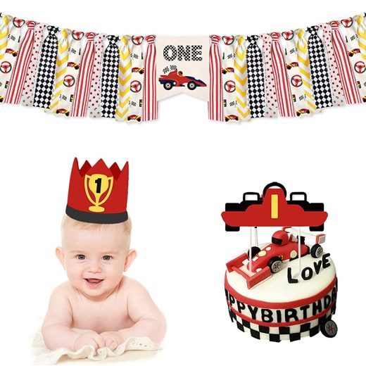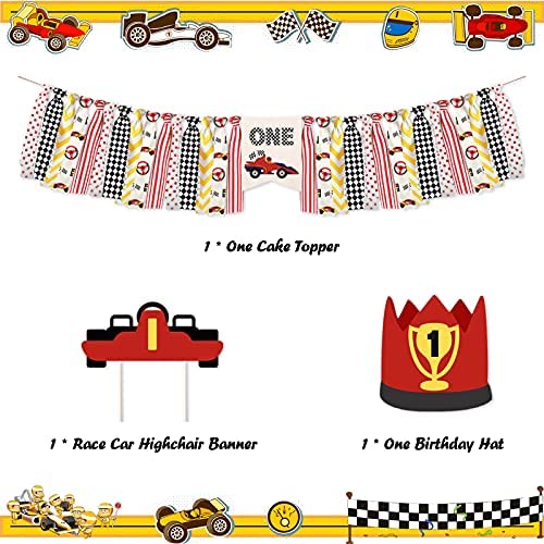 PRATYUS Race Car 1st Birthday Decorations Kit for Baby Shower Boys Girls Lets go Racing Themed Party Supplies With Colorful Burlap Highchair Banner, Cake Topper, Birthday Hat