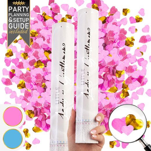 ? Announce With a Bang – Keep everyone guessing until the gender reveal cannons are launched and the confetti explodes revealing the babys gender. Add a pop of fun to your gender reveal party. Premium Cannon Kit – Our gender reveal cannon kit comes in either blue or pink with neutral and discreet packaging that doesn’t give away the gender. It contains heart-shaped confetti to make your announcement look more festive. Perfect Gender Reveal Essential – The heart-shaped paper and foil confetti mix in a vibrant color make your gender reveal cannons excellent photo props as you watch the surprise blast out. Complimentary Party-Planning Guides – Make your hosting a breeze. Complimentary guides are provided to make sure you have a smooth and fun time with our gender reveal party confetti cannons. Safe and Easy To Use – Our non-toxic heart shaped confetti poppers work by simply twisting the bottom to release the contents. It is safe for both indoor and outdoor gender reveal setups.