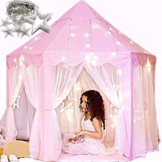 Princess Castle Play Tent with Large Star Lights. Little Girls Princess Tent Toy for Indoor. Pretend and Imaginative Play House. Have Fun, Encourage Social Interaction. Gift for Girls Age 3 4 5 6 7
