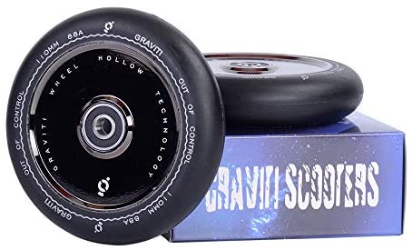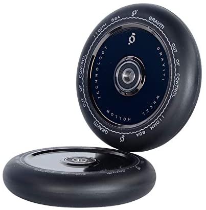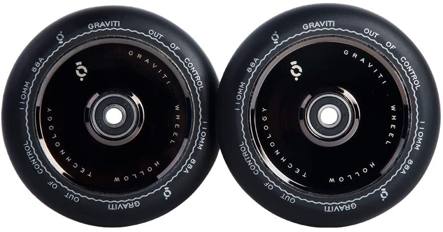 Pro Scooter Wheel 1 Pair 110mm Hollow Wheels with ABEC 9 Bearings for MGP/Razor/Lucky/Envy/Vokul Scooter (2pcs) (Black PU Chrome Black Core)