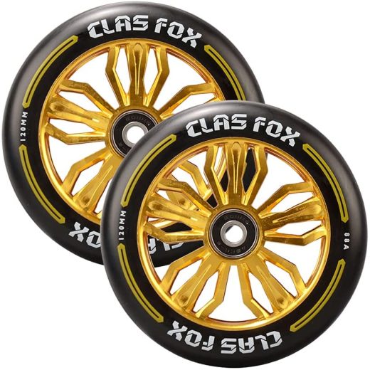 Pro Scooter Wheels 120mm – Scooter Wheels 120mm Pair – Set of 2 – Pro Scooter Wheels u2013 120x24mm with Bearings Installed – Scooter for Kids – Scooter Parts (Black-Gold)