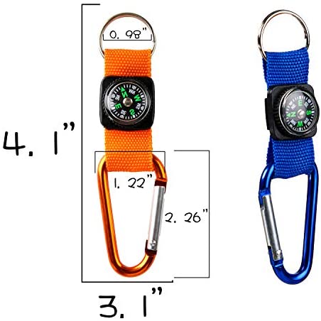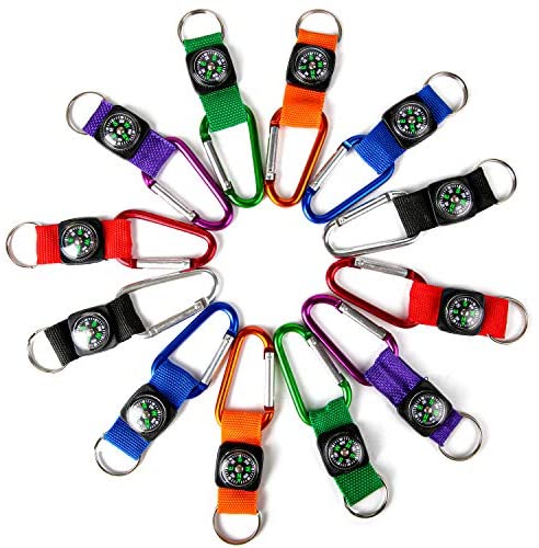 PROLOSO Colorful Carabiner Compass Keychain Belt Clips Kids Toys Prizes Outdoors Adventure Party Favors 20 Pcs