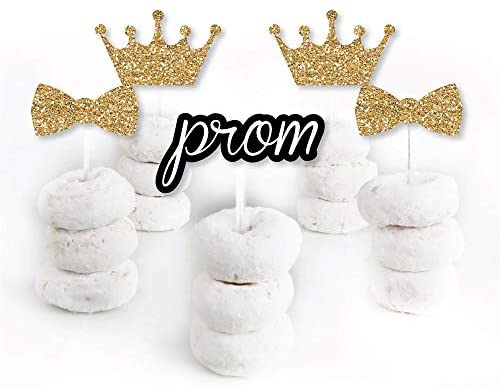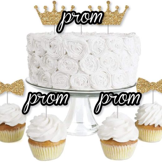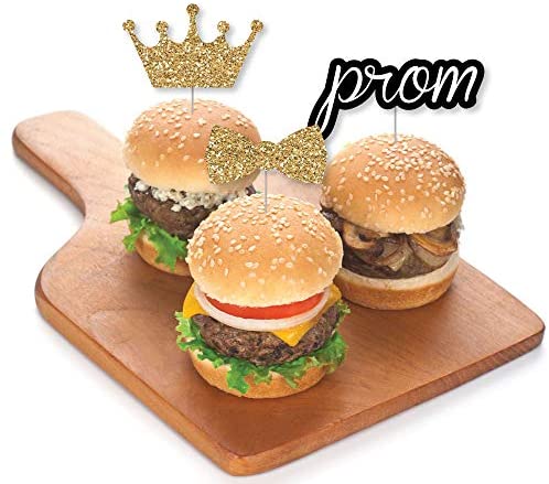 Prom Dessert Cupcake Toppers INCLUDES 24 clear treat picks, 24 shaped paper cut outs and stickers for easy assembly. DIY Prom cupcake supplies are perfect for a prom night party. Plastic clear treat pick SIZE 3.5 inches tall with the completed height of the Prom Dessert Cupcake Topper depending on where the plastic pick is attached to the shaped paper cut out. Cupcake toppers are perfect for standard cupcakes and can also be added to appetizers and individual servings of other sweet treats such as brownies or donuts, and even used to create small fruit kabobs. EASY PARTY DECORATIONS: Prom party picks make it easy to style a black and gold theme party. Create impressive cupcake towers with decorated treats placed on a tiered stand at the candy buffet table, style adorable tables with individual cupcakes at each place setting, or make creative centerpieces using decorated treats and a coordinating treat stand. PREMIUM PARTY SUPPLIES: Clear treat picks are made of food-grade plastic and packaged in a food-safe environment. The Prom paper cut out toppers are professionally printed on heavy-duty cardstock paper with themed art on one side and a coordinating pattern on the back. Cut outs will quickly attach to the clear dessert pick and then easily insert into your party appetizers or desserts. EASY ASSEMBLY INSTRUCTIONS INCLUDED: Clear treat picks and Prom shaped cutouts will ship with easy assembly instructions to create unique dessert cupcake toppers. Prom Dessert Cupcake Toppers use a No-Mess Glitter Print: Our cupcake toppers are designed with a printed image of glitter, eliminating glitter flake while maximizing bling effect!