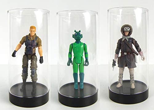 Protech CC-5 Round Storage / Display Acrylic Action Figure Display Case with Black Base, 2.25 W x 4.75 H x 2.25 D, 10-PackInterior Dimensions: 2.25 x 4.75 x 2.25 inches (width x height x depth)What size case to order Measure your carded item by its width, height, and depth to ensure it will fit inside of this case.Material: Made from crystal clear injection molded plastic.Uses: This case is designed to fit most 3 3/4-4 scale action figures, such as vintage and new Star Wars figures, and G.I. Joe: A Real American Hero.Does Not Include: Pictured action figure.