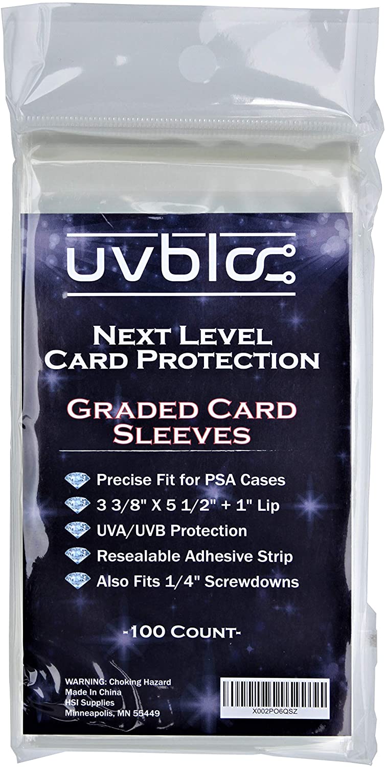 Precise fit team BAGS for PSA cases to provide that extra layer of protection for Investment grade cards. UVBloc card supplies take it to the next level for collectors of Baseball, Basketball, Football, Hockey, Pokemon cards.