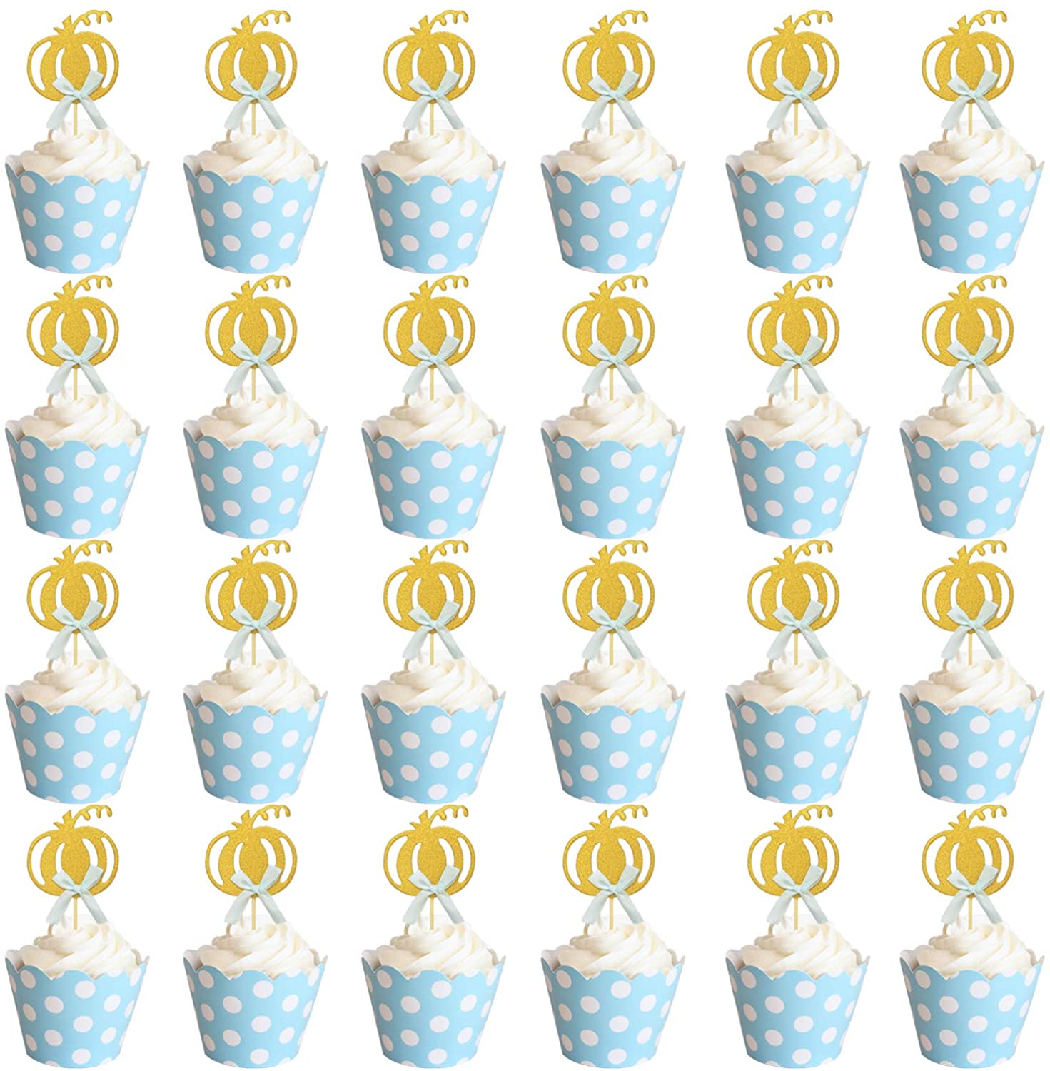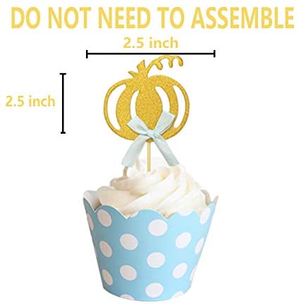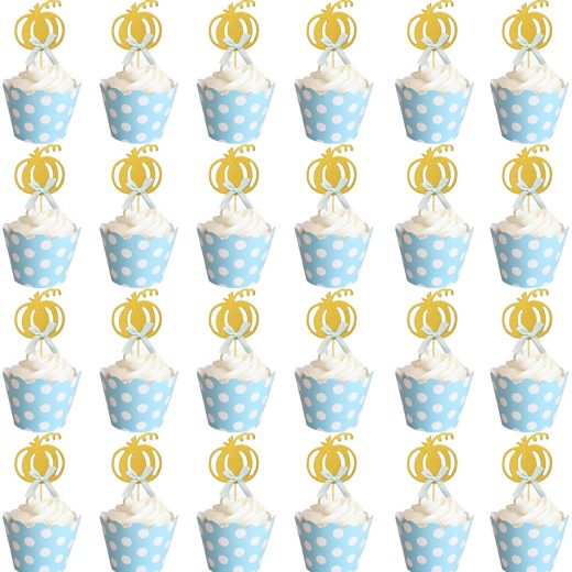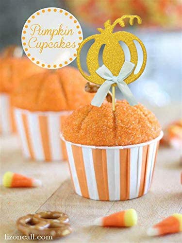 Pumpkin Cupcake Toppers Boy, Fall Theme Cake Decorations for Pumpkin Baby Shower, Birthday Party Decorations-24 Packs