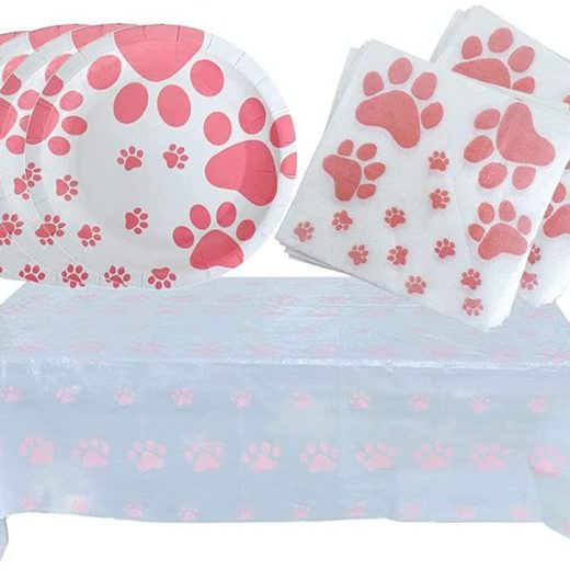 puppy birthday,dog birthday party supplies Includes 20 Paper Plates – 20 Napkin and 1 Table Cloth Childrens Birthday Party Decorations for Girls 20 Guest