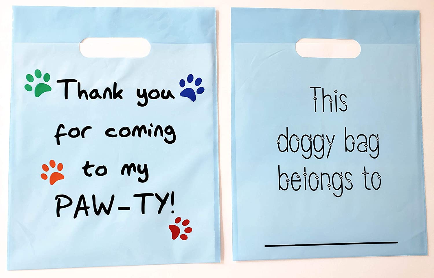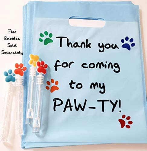 24 colorful fun bags with doggy print and font. Unique alternative to the same ole loot bags. Printed on both sides! One sides says “Thank you for coming to my PAW-TY” and the other says “This doggy bag belongs to _____”. Fill in the blank with the kids’ names for a personal effect. Ready to pass out! Our premium bags are super strong and unisex so no need to buy separate for boys and girls. Great for collecting candy from a piñata or passing treats as well as favors. Pairs with our paw bubbles in 4 colors. Perfect for any Paw Patrol celebration, decorations, birthday supplies, classroom giveaways, or even a dog party! No need for special thank you card with this bag. Add to cart without worry as we will offer full refund if you are not happy!