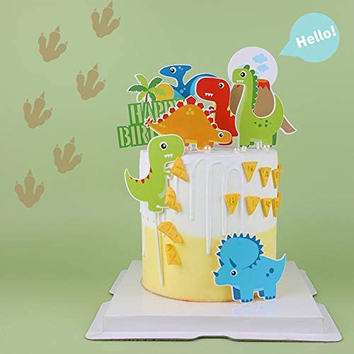 DESCRIPTION All our Cake topper props are professionally printed with quality ink on high-quality card stock paper. No extra work is needed, since props are Easy to assemble. These props are ideal for birthday parties for adults and kids. PureArte birthday cake topper props will make your cake look cute, fun and unforgettable. Let’s have some fun people PACKAGE CONTAINS: 9 Unique and durable cutouts of Birthday Dinosaurs Cloud Cake Decoration Theme Decoration props ( Dinosaurs Cloud ) 9 Plastic dowels9 Adhesive dots