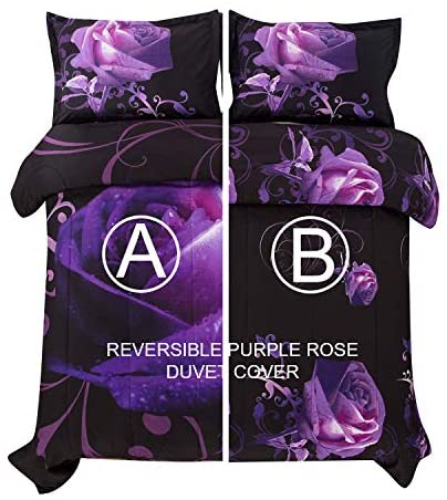 Purple Duvet Cover: Includes one duvet cover (68×86 inches), two pillowcases ( 20×26 inches). Perfect gift choice for your families and friends. Purple Rose Pattern: Purple Rose Printed Bedding Duvet Cover brings an eye-catching update to your bedroom, creating a unique and coordinated appearance so that meets your bedroom style changing needs. Reversible Design: The purple rose printed bedding has different designs on both sides. A Side is designed with a big rose pattern, B side adopts multiple small roses pattern designs, which adds a romantic atmosphere to your bedroom. Exquisite Workmanship: Exquisite stitches, clear pattern. The soft microfiber fabric is comfortable and breathable, lets you have a warm and perfect sleep. Easy Care: The premium quality fabric will not tear and shrink easily, requires little maintenance when washing, which saves your time and energy. Machine wash cold on gentle cycle, tumble dry on low heat, do not bleach. Tumble dry on low heat and use warm iron if needed.