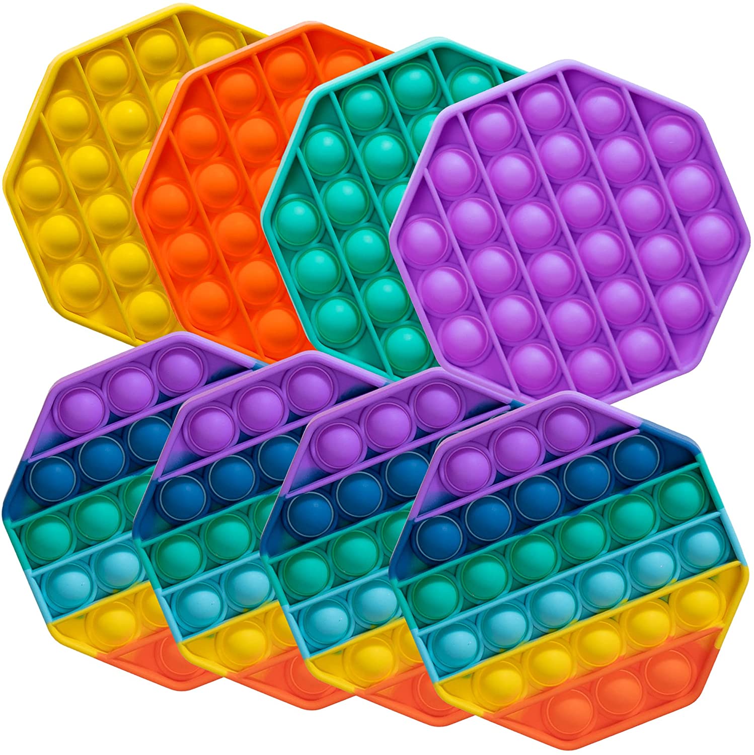 Push Pop Fidget Toy, 8-Pack Push Pop Bubble Fidget, Octagon Push Pop Bubble Sensory Fidget Toy, Rainbow, Purple, Orange, Mint Green, Yellow