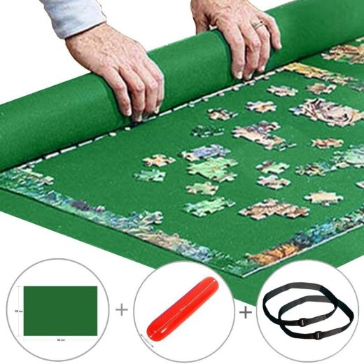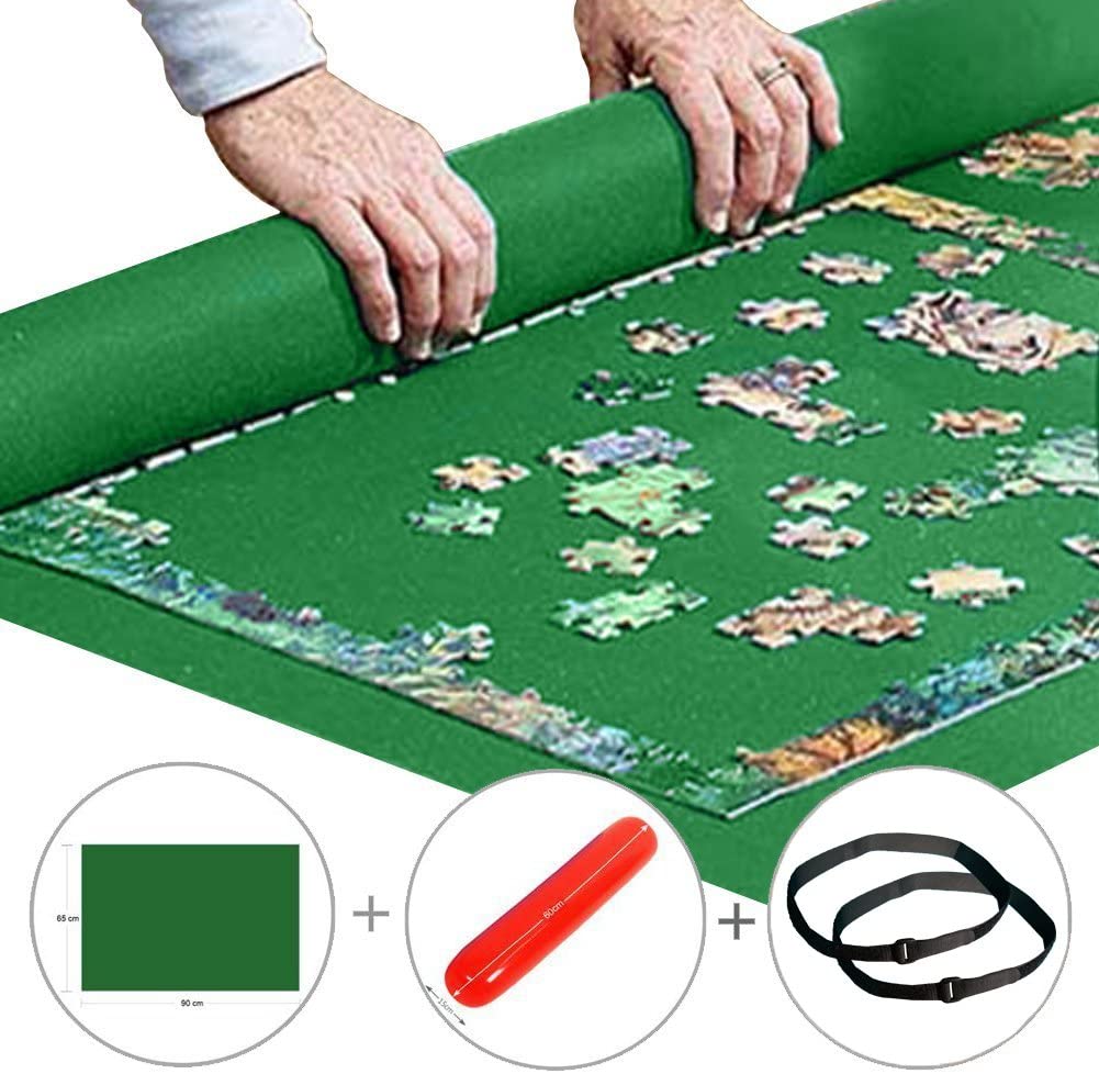 Special Design of Felt Mat – The color of grass green helps for easy sorting and contrast without any color confusion. Felt mat is made of sbr materials, which is easy to roll up. Bigger Size – 36.6 x 24.1 mat for up to 1000 pieces puzzle. Genius Idea of The Inflatable Tube – You can control the firmness of the tube based on how much air you add and would not bent your pieces when you use soft and inflatable tube. Three Not Attached Elastic Bands – You can put the straps as close together or far apart, and as close to or far away from the ends of the tube, as you choose, based on the size of your puzzle. Dont Waste Precious Time – Have you ever had to tear down a large 1000 pieces jigsaw puzzle just so you could clear the table Not anymore!