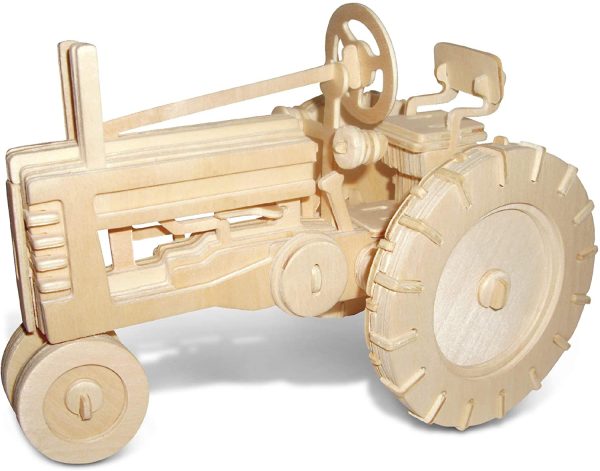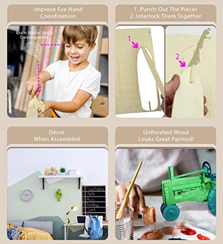 Puzzled 3D Puzzle Farm Tractor Set Wood Craft Construction Model Kit, Fun & Educational DIY Wooden Toy Assemble Model Unfinished Crafting Hobby Puzzle to Build & Paint for Decoration 130 Pieces Pack