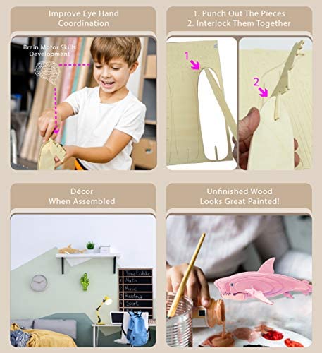 Puzzled 3D Puzzle Great White Shark Wood Craft Construction Model Kit, Educational DIY Wooden Sea Life Toy Assemble Model Unfinished Crafting Hobby Puzzle, Build and Paint for Decoration 23pcs Pack