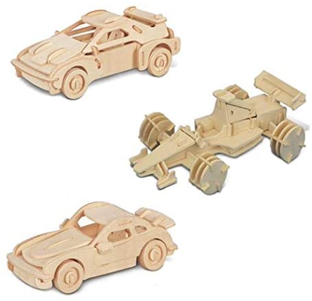 THE RACING CARS PUZZLE BUNDLE COMES WITH UNIQUE DESIGN YOU WILL LOVE – Be proud to display your assembled race car models on any surface or case. Share the love and passion for racing cars, sporting, and speeding memorabilia with your friends & family. Ideal puzzles for kids & teens who are motorist enthusiasts of car models and construction hobbyists. These instructional car 3D wooden puzzles will help them learn & stimulate their skills in an entertaining way and with endless hours of fun! THE RACING CARS PUZZLE BUNDLE IS FOR ANYONE WHO LOVES PUZZLES – The Racing Cars 3 dimensional craft kit bundle comes with models to build for adult & kids who love using their brain and create something with their hands. Puzzles lovers at any age or gender will enjoy building these amazing wood toy kits and painting the 3d wood puzzles to make them their own. Great father & son 3d puzzles for boys school project as well as puzzle for girls get together & craft play time with friends and family. INCLUDED WITH THE PURCHASE OF RACING CARS WOODEN PUZZLE BUNDLE CRAFT KIT – This Racing Cars Puzzle Bundle pack of 3 includes 1 F-20 car 3D puzzle wood craft construction kit with 43 interlocking puzzle pieces of 7Lx3Wx2.5H, 1 P911 car 3D puzzle wood construction kit with 43 pieces of 9.5Lx5Wx3.5H, and 1 Race Car 3D wooden puzzle kit with 91 pieces of 9.5Lx5.5Wx3H. Each wooden puzzle construction kit comes with instructions manual and 1 paper for sanding edges. HIGH-QUALITY RACING CARS WOODEN PUZZLE BUNDLE 3D KIT – The Racing Cars 3D puzzle bundle is made of high-grade 3mm natural wood. All puzzle pieces are pre-cut and sanded thoroughly to ensure smoothness of edges. Adorned with realistic details that result in authentic-loooking models. The unfinished color wood of this 3D Racing Cars wooden puzzle makes it perfect for customizing it & making it your own! Once assembled, the car models will stand on their own, being ready for display and exhibit. IDEAL USE FOR THE RACING CARS WOODEN PUZZLE BUNDLE MODEL KIT – Challenge yourself & your loved ones to building this DIY cut 3-D puzzle bundle. Display your achievement as artwork or play with your new model toy. 3D puzzles woodcraft construction kits help develop eye coordination, problem-solving & shape recognition skills while encouraging creativity. Customize your motorcycle diy toy kits! Paint it for school projects or make it a game friends & family can enjoy while spending time together.