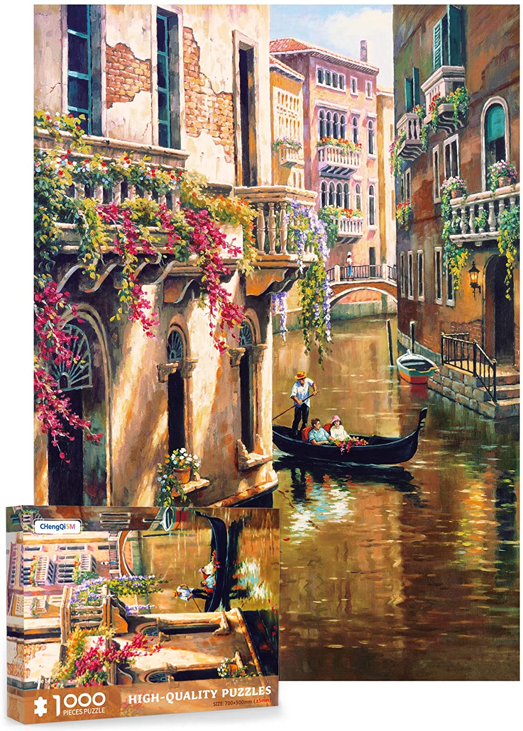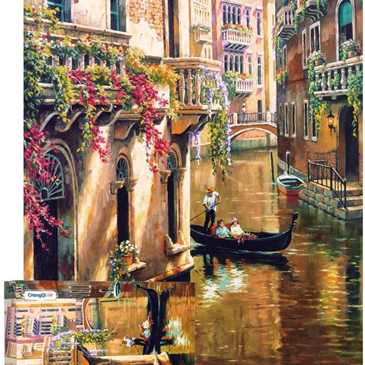 Puzzles 1000 Pieces for Adults Venice Flower River Oil Painting Landscape Jigsaw Puzzles Educational Games Brain Challenge Home Decoration Puzzles