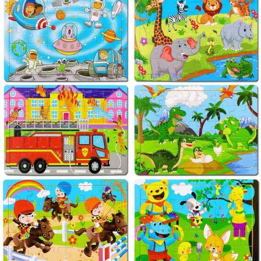 Puzzles for Kids Ages 3-5, 6 Pack Wooden Jigsaw Puzzles for Toddlers 30 Pieces Preschool Educational Learning Toys Set for Boys and Girls