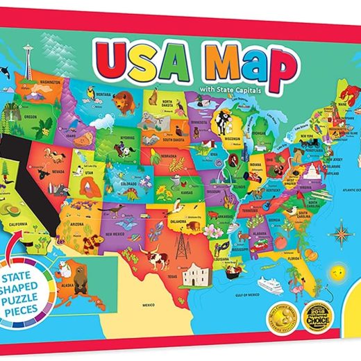 Puzzles for Kids Ages 4-8, 60 Piece Jigsaw Puzzle for Toddler and Family Fun – USA Map w/ State Pieces by MasterPieces u2013 Family Owned American Company