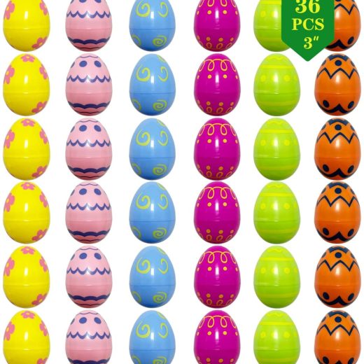 QINGQIU 36 PCS Big 3 Printed Plastic Easter Eggs Features: 1. You will get 36 pcs plastic printed easter eggs, the size of each egg is 2.1 x 3 (5.3…