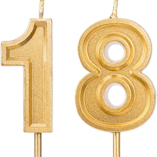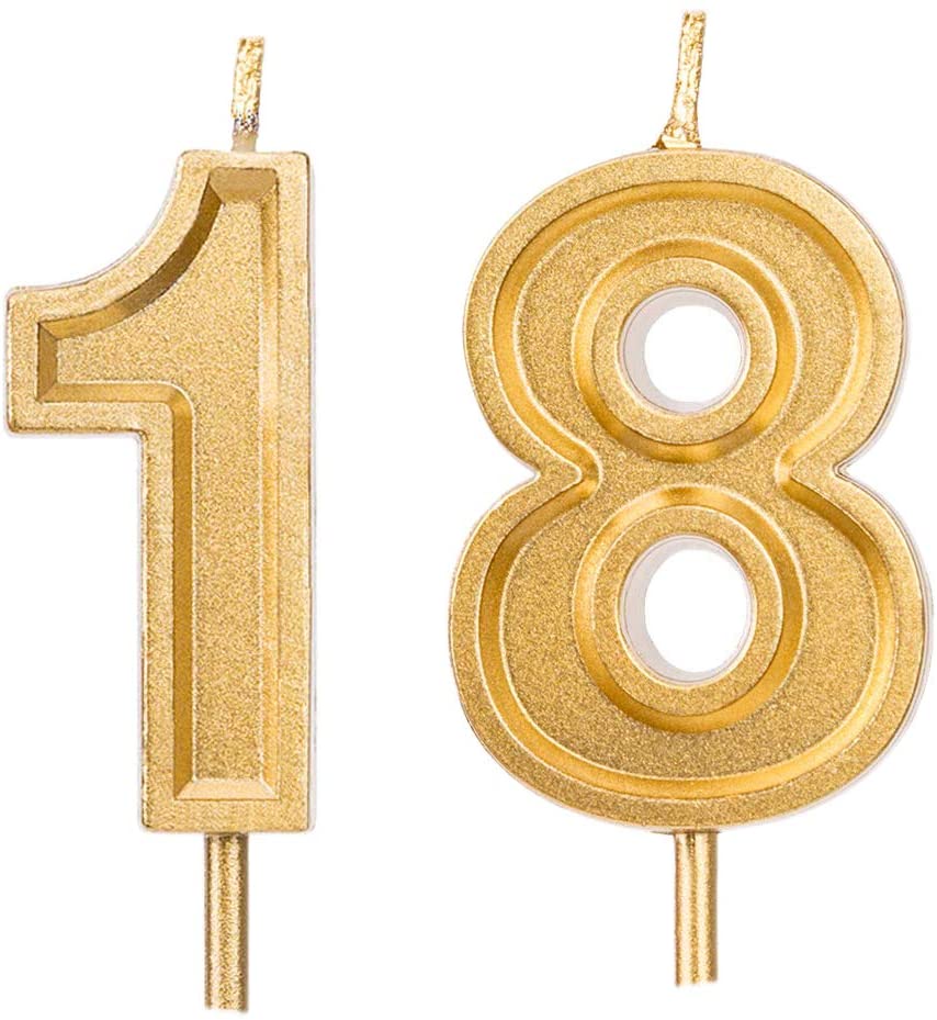 Qj-solar 2.76 inch Gold Number 18 Birthday Candles,18th Cake Topper for Birthday Decorations