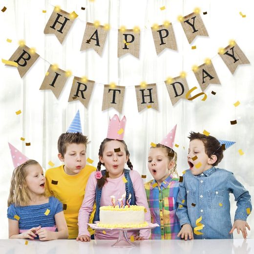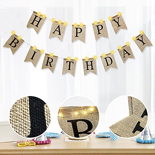 QSUM Birthday Banner,Burlap Bunting LED Lights Happy Birthday Banner For Women, Men, Girl, Boy, Kids, Adult Party Supplies House Party Decor