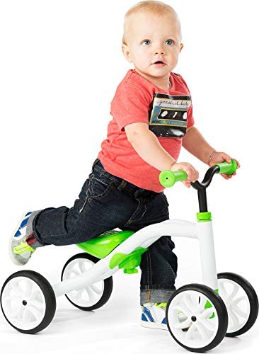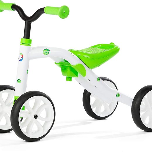 Quadie: Stable 4-wheel u201cGrow-with-Meu201d Ride-On, 3 Seat Positions with Cookie Storage in the Seat, Silent Non-Marking Wheels and Customization Stickers, Ages 1-3, Lime