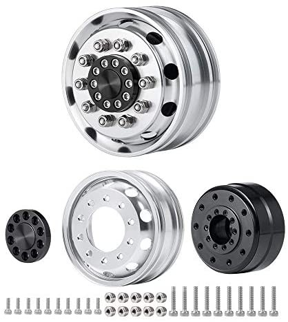 Que-T 2pcs Metal Front Wheel Hubs Rims for 1/14 Tamiya Tractor Climbing Trailer RC Car Upgrade Parts