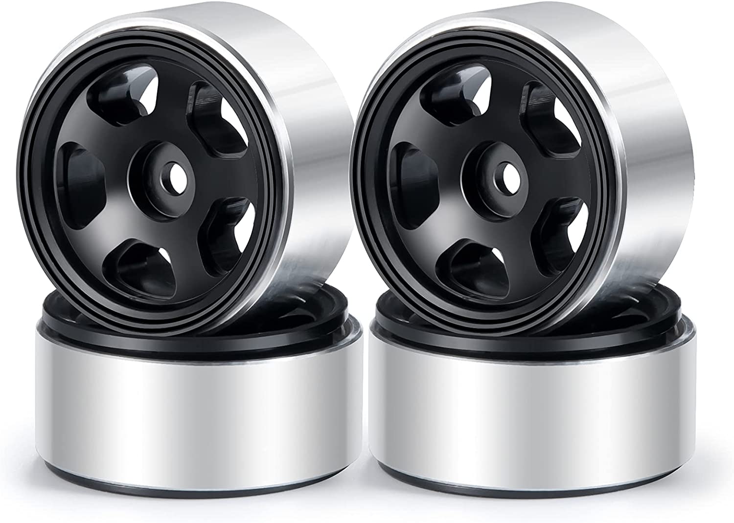 Que-T 4pcs 1.0inches RC Beadlock Wheel Rims Wheel Hubs for 1/24 Axial SCX24 AXI90081 AXI00001 AXI00002 Crawler Car Upgrade Parts (Black)