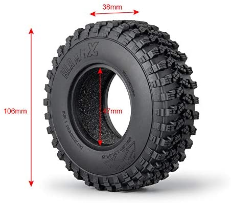 Made of rubber, with sponge insert Outer Diameter: 106mm/4.17 Width: 38mm/1.49 Weight: about 252g/Set Fit for rc 1:10 Axial SCX10 D90 TRX4 Crawler …